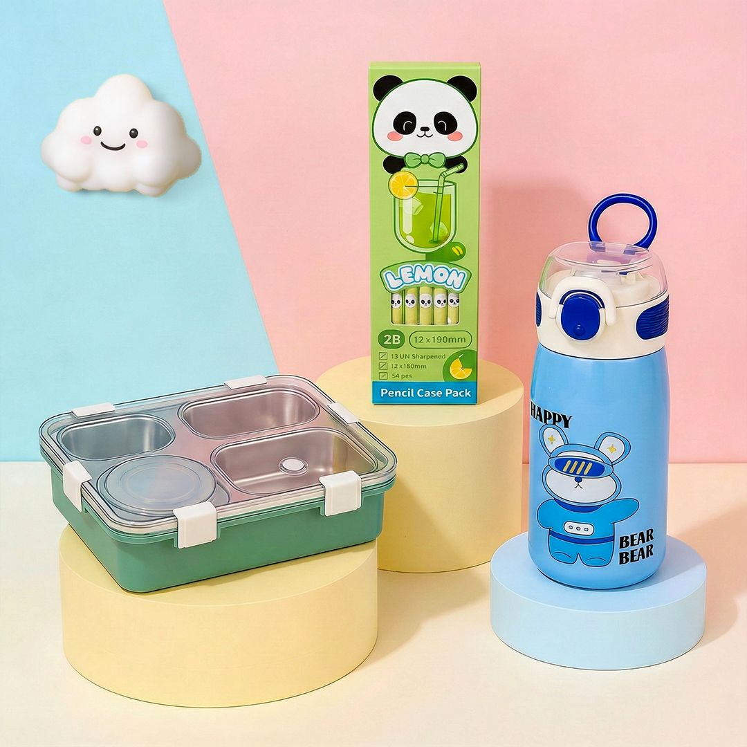 Starter Pack 3 is designed for kids who deserve the best. This premium bundle combines superior insulation, smart storage, and creative stationery to support your child's daily adventures.